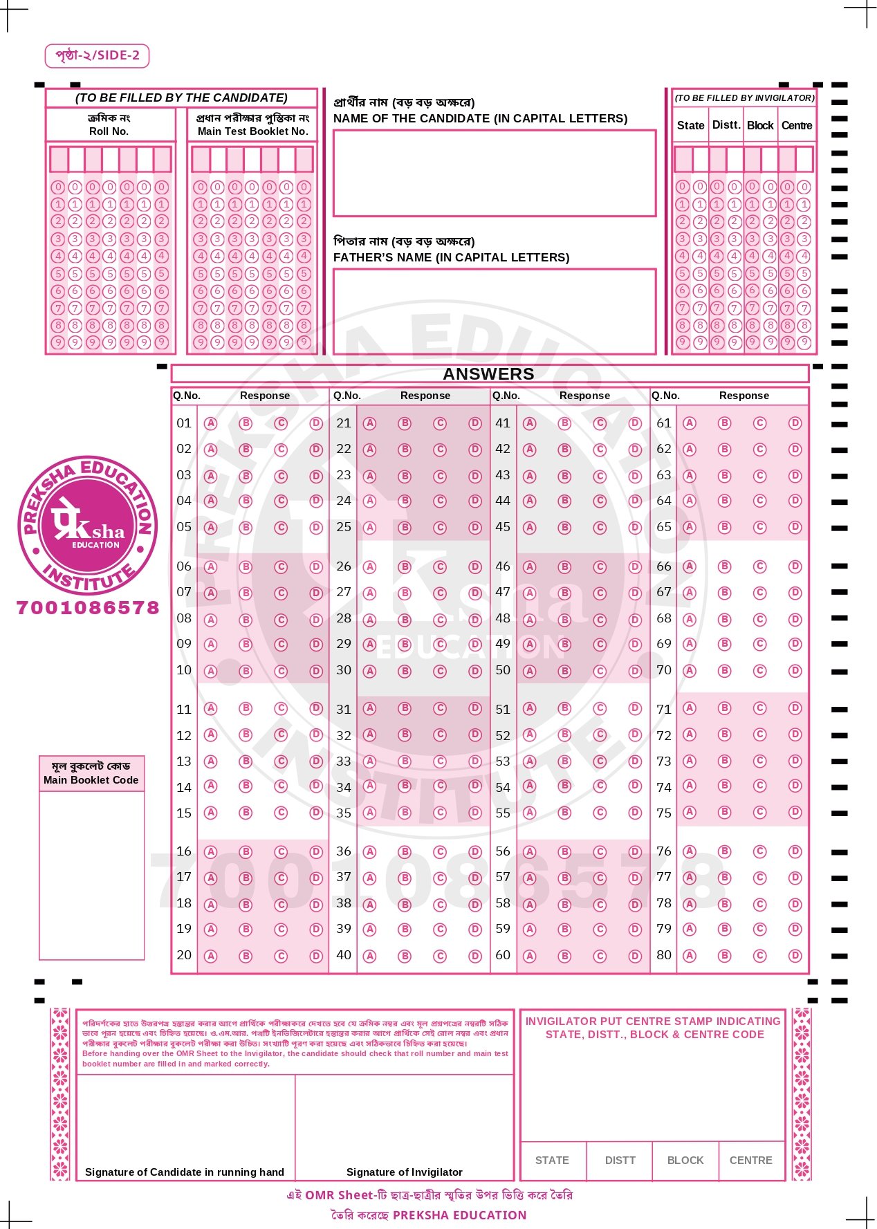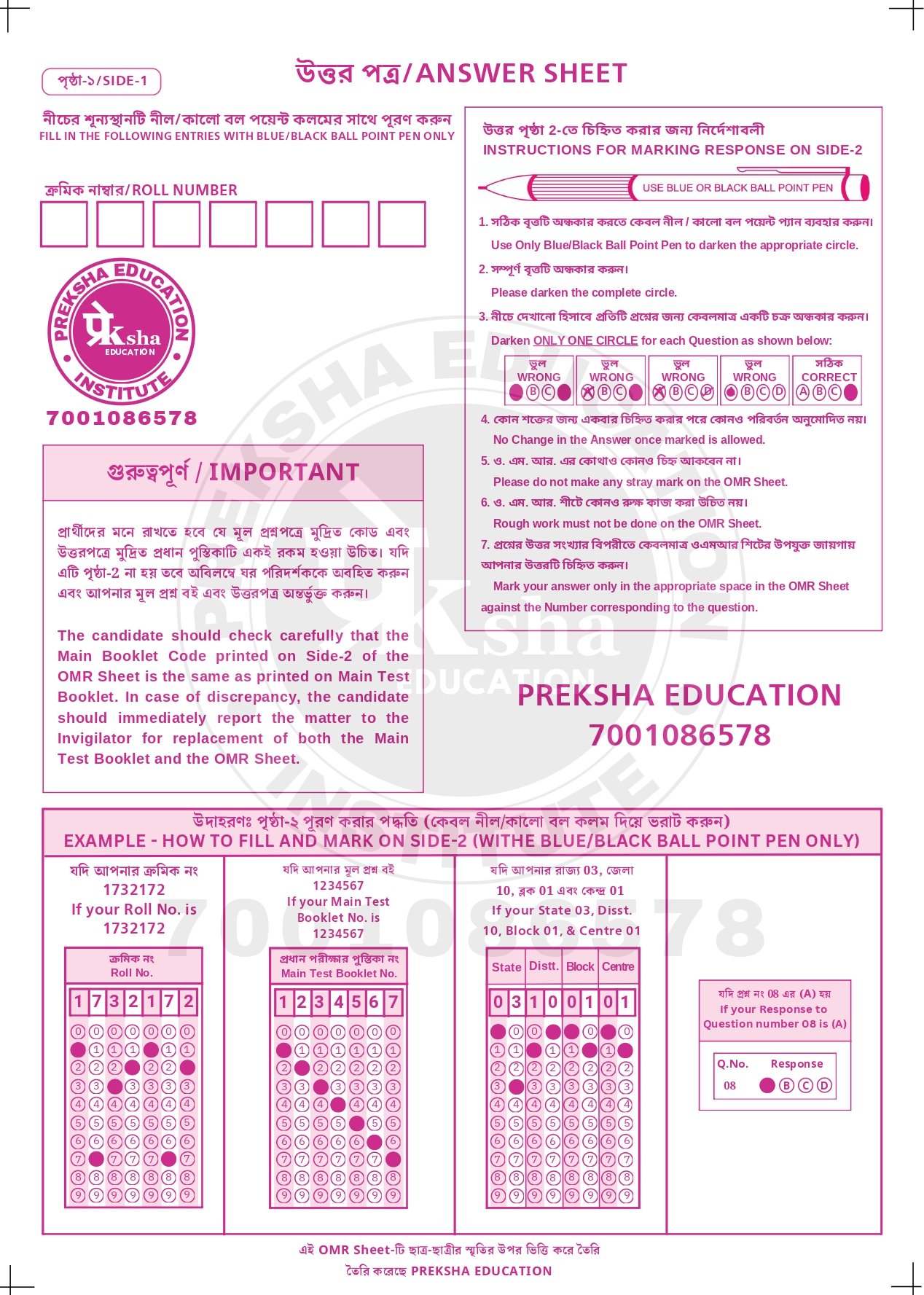- OMR Sheet Practice — সঠিকভাবে উত্তর দেওয়ার অনুশীলন
